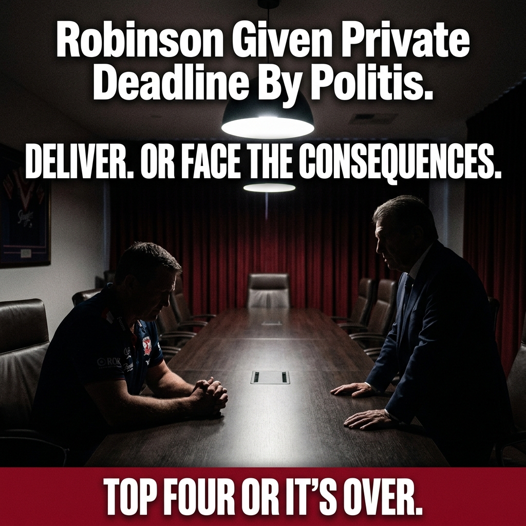 Trent Robinson is not finished at the Sydney Roosters. But he is, for the first time in a long time, genuinely under pressure from the one man whose opinion matters most. Nick Politis built this club around Robinson’s vision. He can unwind it just as quickly. The top four deadline is real. The consequences are real. And between now and September, every decision Robinson makes — on the training paddock, in the selection room, and in whatever conversation he has next with his chairman — will be made with the full knowledge of what is at stake. This is the defining season of Trent Robinson’s extraordinary coaching career. He has been here before. He has never faced quite this combination of pressures at once. How he responds will determine not just whether the Roosters make the top four — but whether he is still their coach when 2027 begins.